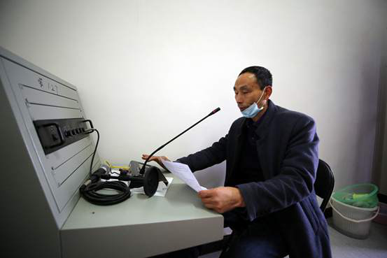 龍山縣茨巖塘鎮(zhèn)包谷村支部書(shū)記張宏林正在通過(guò)“村村響”播報(bào)防控政策和知識(shí)